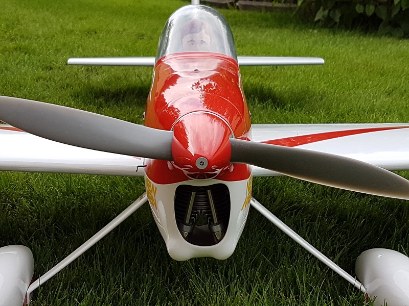 Viele gute manchmal auch nur kleine Detaillösungen wurden berücksichtigt und kontruktiv verwertet, was dabei herauskam, ist ein absolut optimiertes Modell, fast schon ein Mitteldecker mit Kunstflugeigenschaften wie sie heute von guten Piloten gefordert werden. Das Modell ist mit einem 20ccm 4-Takter richtig motorisiert und hat den nötigen Power für alle Figuren. Selbstverst. kann das Modell auch mit 10-15ccm 2-Takt Motoren geflogen werden.