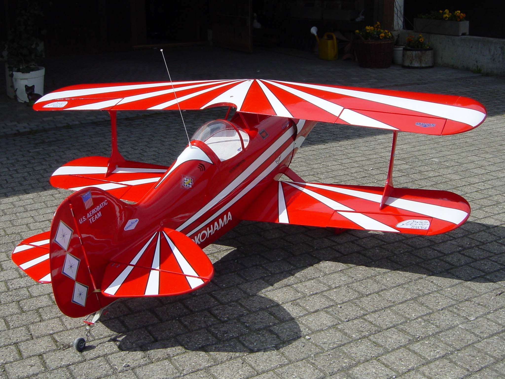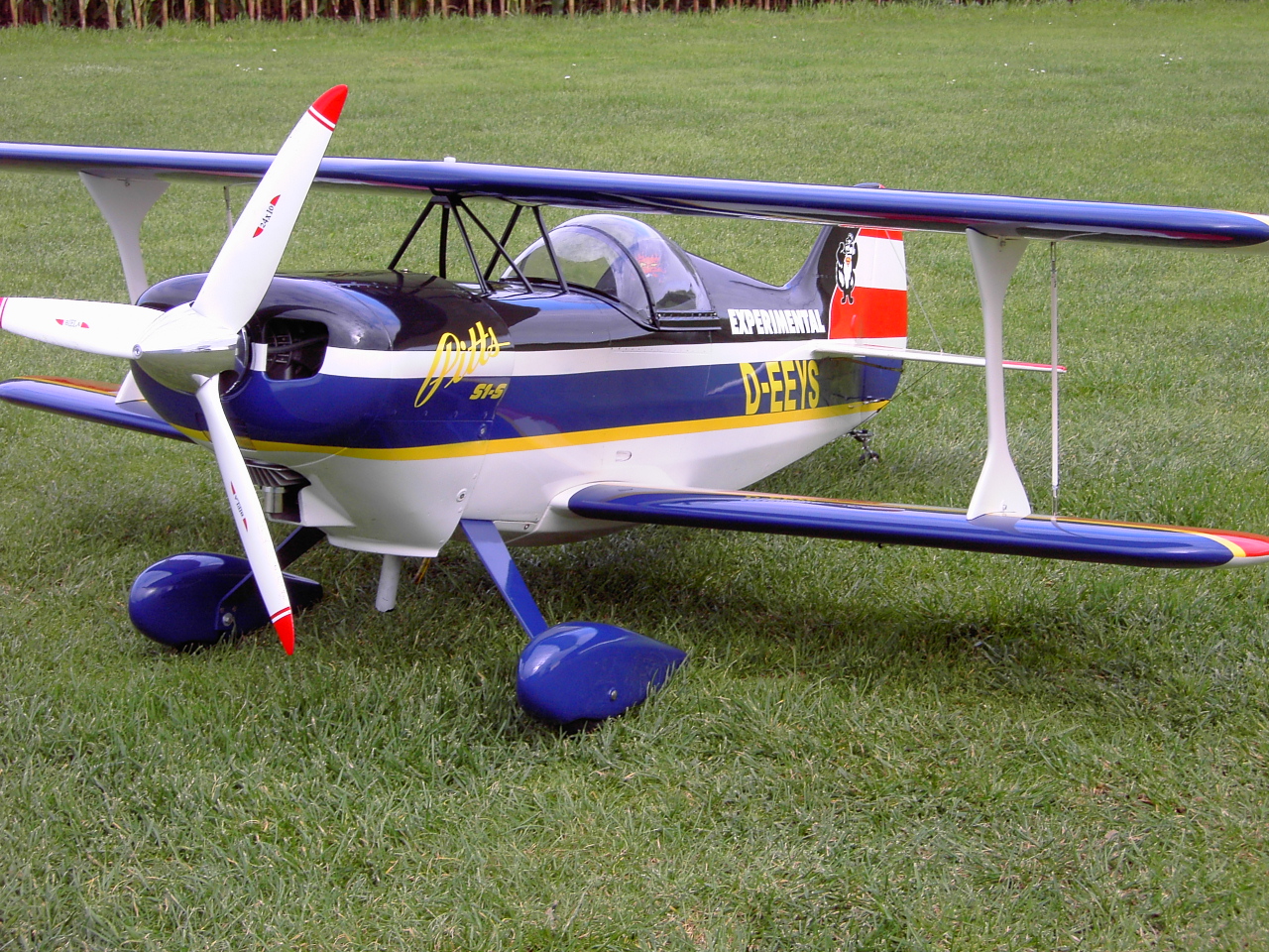 Im Reigen der weltbesten Kunstflugmaschinen hat der kleine überaus wendige Doppeldecker -Pitts spez S-1S einen super guten Namen. So wurden bereits mehrere Weltmeisterschaften mit dieser Maschine gewonnen und viele erste und zweite nationale und internationale Wettbewerbe errungen.Die Pitts spez. ist eine der leistungsstärksten Doppeldecker der Welt. Sie wurde von uns im Maßstab 1:3 nachgebaut und für Motoren von ab. 40 ccm ausgelegt. Die Flugleistungen des Modells sind dem Original sehr ähnlich, so kann mit dem Modell das gesamte Kunstflugprogramm mit allen positiven und negativen Figuren geflogen werden. Dabei ist die Pitts bei Start und Landung sehr gutmütig und kann auch von weniger geübten Piloten beherrscht werden.