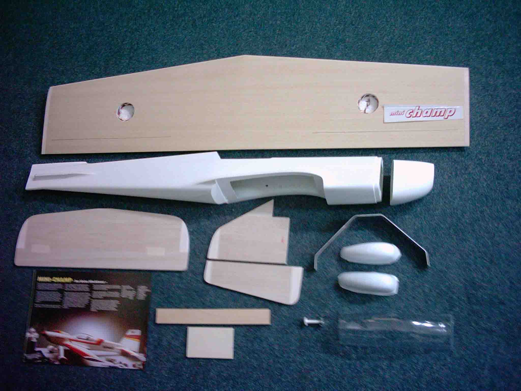 Bausatz, GFK Rumpf mit Motorhaube , Flächen CNC geschnitten mit Furnier beplankt ,Nasenleisten verklebt und verschliffen, Kabel eingezogen ,Servokästen ausgefräst , Leitwerke fertig, Kabinenhaube klar, Holzteile, Fahrwerk, Radverkleidung und Bauplan .