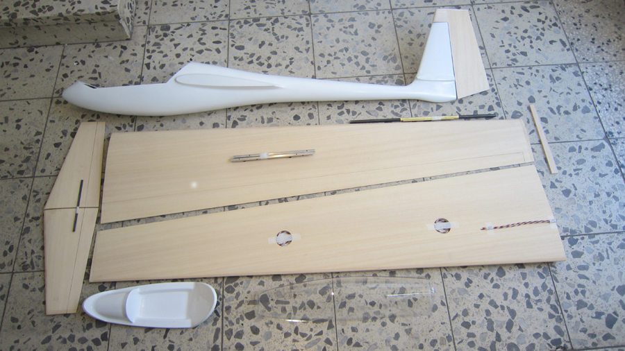 Meine MÜ28 hat anstelle von Störklappen jetzt Wölbklappen, die zu den Querrudern mitlaufen können. Das HLW habe ich „gependelt“ eingebaut (das Servo sitzt direkt im Heck, dazu erhielt der Rumpf seitlich eine Wartungsklappe). Das Seitenleitwerk habe ich über Seile angelenkt.