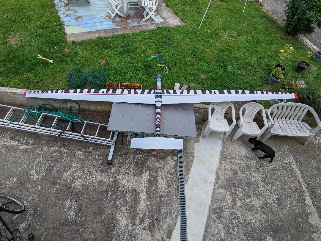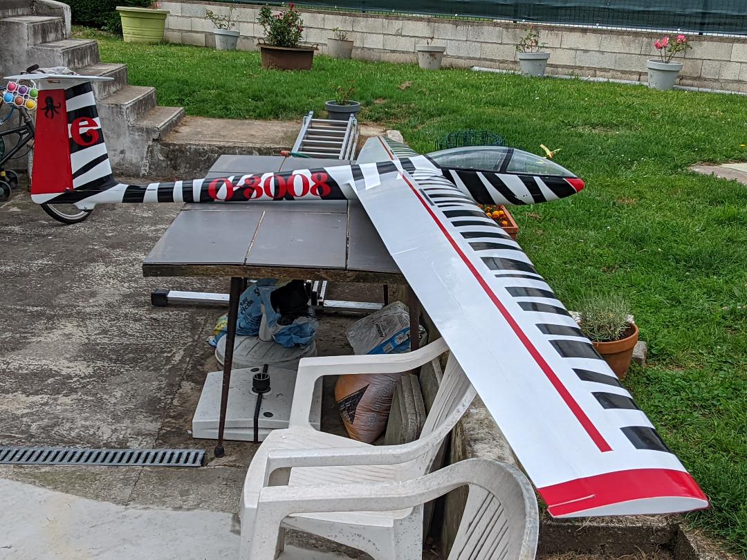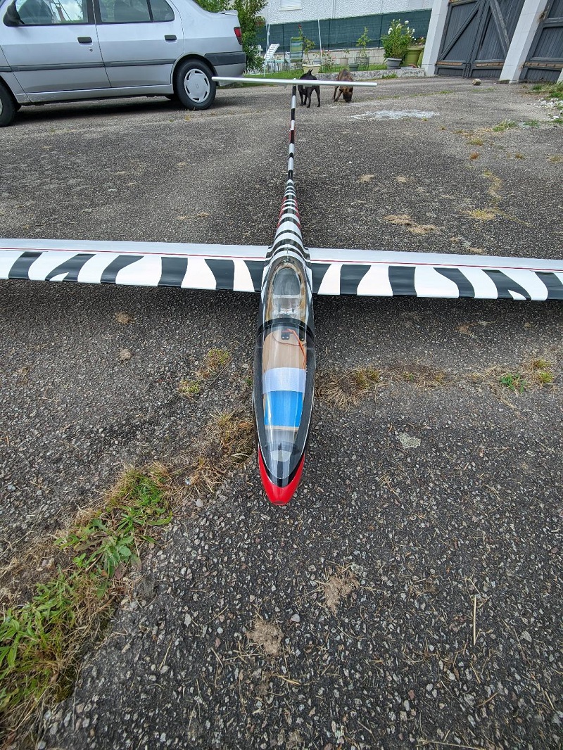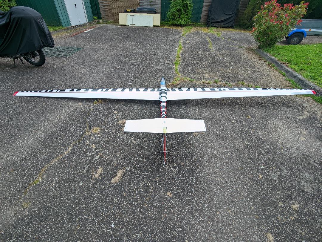 Planeur Topp Rippin Circé 36 5m30, 13kilos, 8s lipos 4000mah, moteur sk3 5055 320kv, variateur yep 120A, servos aileerons hitec 645mg, aérofreins futaba 3001, profondeur 2x hitec 5125mg, direction ds 3225mg 25kilos.